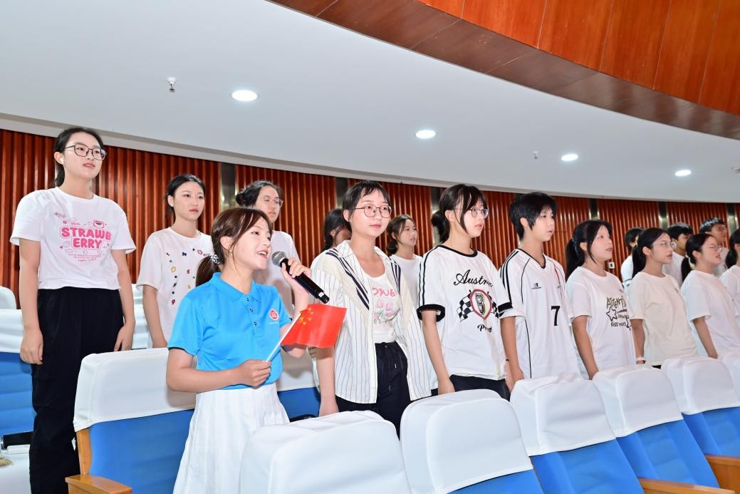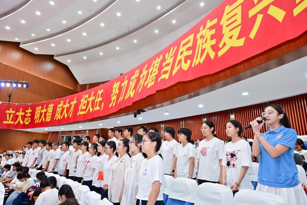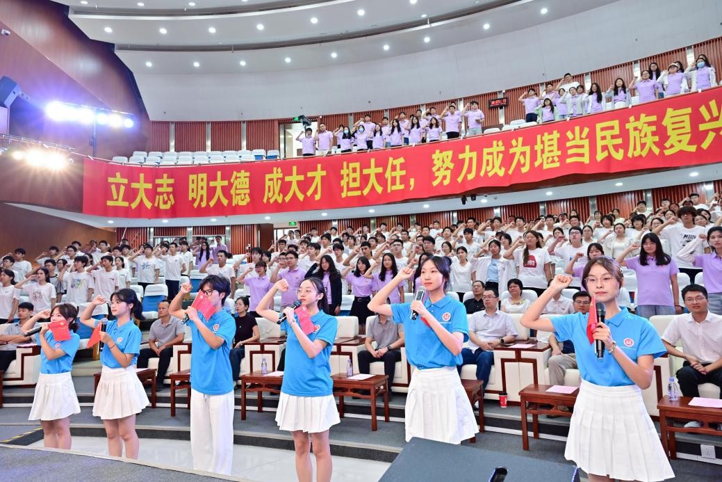 全体新生挥动手中的小红旗,齐唱饱含热忱的《福州大学校歌》。随后,开学典礼在全体新生掷地有声的誓言中落下帷幕。