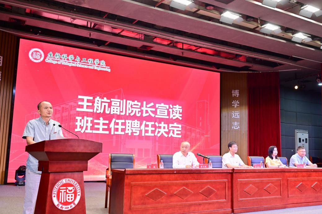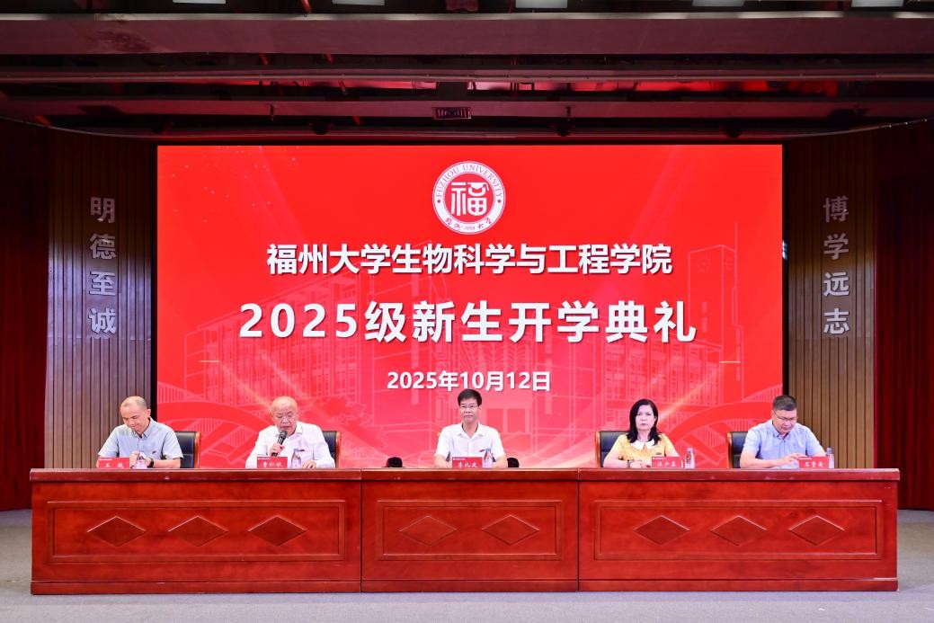 2025年10月12日,福州大学生物科学与工程学院2025级新生开学典礼在福州大学旗山校区图书馆博学厅隆重举行。院党委李礼建书记、院长汪少芸教授、院党委曹仁秋副书记、副院长石贤爱教授、副院长王航副教授出席典礼。学院中层干部、全体思政辅导员、新生班主任及2025级全体本、硕、博新生共同参加典礼,典礼由院党委曹仁秋副书记主持。