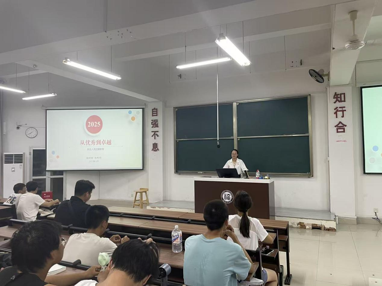 为引导2025级本科新生坚定理想信念、端正入党动机、科学规划大学生活,9月27日晚,我院邀请校党委组织部组织科科长赵艳莉副教授在铜盘校区B315教室开展《从优秀到卓越》入党启蒙教育讲座,为全体新生带来一堂深刻而富有启迪的“信仰第一课”。