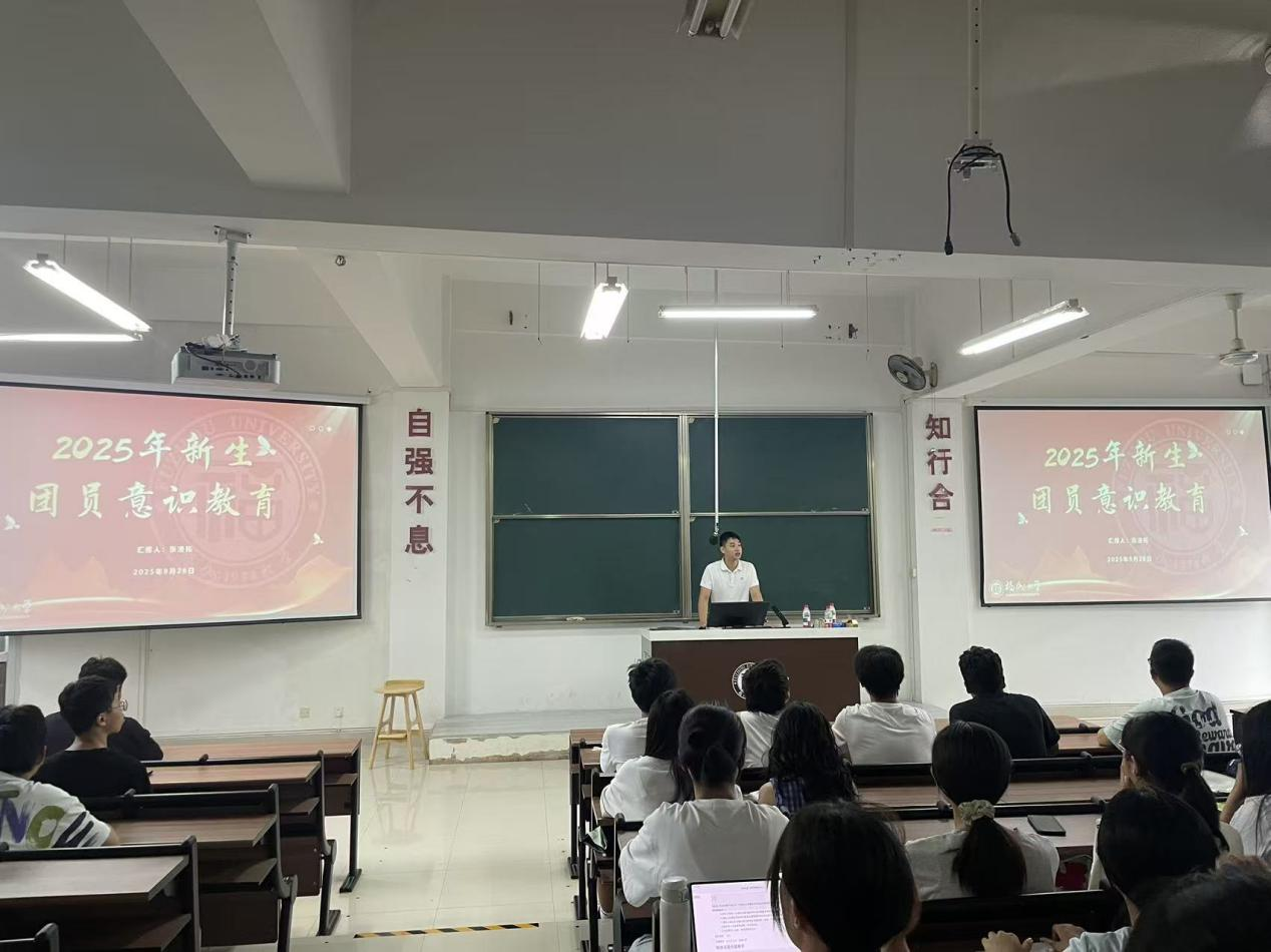为加强新生理想信念教育,引导2025级本科生强化团员意识、明确成长路径,9月28日下午,我院团委副书记张凌拓在铜盘校区B315教室为全体新生讲授团员意识教育课,助力新生筑牢信仰根基、规划大学生活。