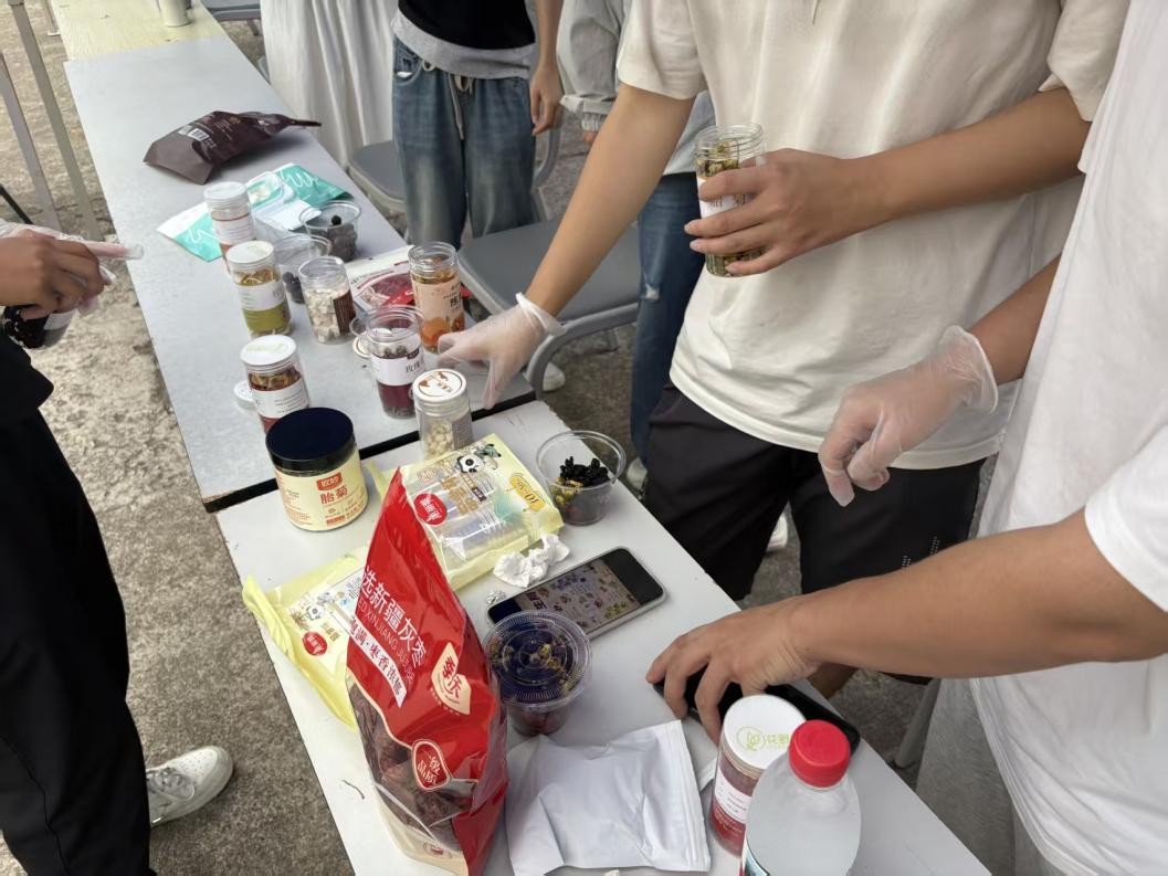 活动现场设置了理论讲解与动手实践两大环节。支部成员前期系统梳理了枸杞、菊花、山楂等常见药食同源食材的性味与功效,转化为通俗易懂的科普内容,搭建起传统中医知识与现代生活的认知桥梁。在体验区,同学们引导师生及食堂工作人员亲手搭配、称重、泡制个性化养生茶饮,将抽象理论转化为可触可感的实践过程。现场还提供了预先调配的茶饮小样,供大家在忙碌间隙品尝,感受中医药膳的独特魅力。整个过程互动频繁、气氛热烈,参与者在体验中加深了对药食同源理念的理解,也提升了健康生活的兴趣。