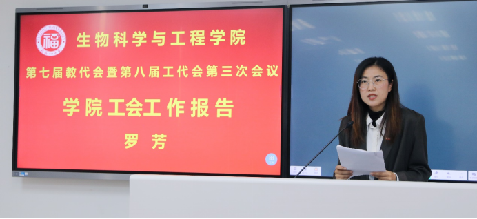会议还听取并审议了院工会主席罗芳教授所作的《学院工会2025年工作报告》。报告系统总结了一年来工会在服务教职工、推进民主管理、建设和谐学院等方面所做的工作与成效。本着务实高效、绿色办公的原则,大会以电子形式向全体代表提交了《学院2025年经费收支情况报告》、《学院工会2025年经费收支情况报告》以及《生物科学与工程学院教师工作量计算实施细则》(讨论稿)等文件,供代表审议。