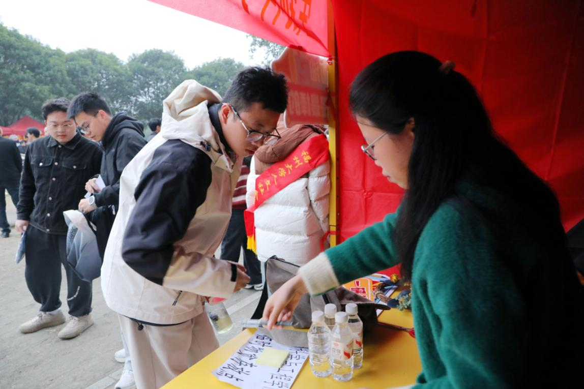 考研服务站贴心备好2B铅笔、黑色签字笔、橡皮、透明文件袋、饮用水等备考物资。同时招募学生志愿者在服务站值班,以应对身份证件遗失、准考证破损、突发身体不适等情况。同时设立个人物品临时存放区,分类保管考生携带的手机、书包、备考材料等物品。此外,辅导员和学生志愿者提供考前提醒与心理支持,帮助缓解学子紧张情绪。