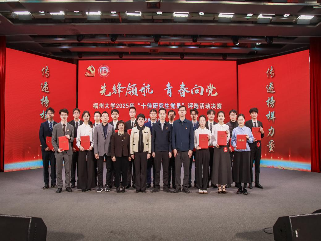 12月12日,福州大学2025年“先锋领航,青春向党,十佳研究生党员”评选活动圆满落幕。我院2025级博士研究生曾子琦凭借过硬的政治素养、优异的学业科研成绩及扎实的服务奉献精神,在评选中脱颖而出,荣获“十佳研究生党员”提名奖。