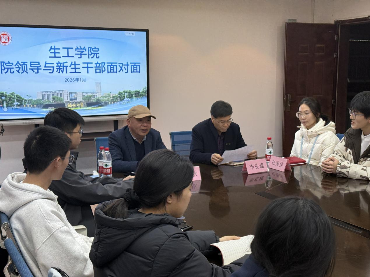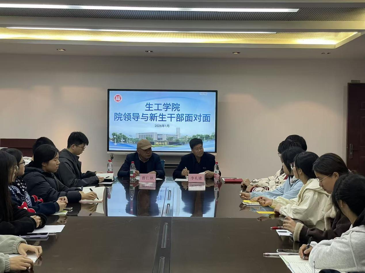为深入了解新生学习、思想动态,加强学生干部队伍建设,1月19日晚,院领导与2025级新生骨干“面对面”座谈交流会在铜盘校区会议室召开。院党委书记李礼建、党委副书记曹仁秋出席本次座谈交流会,座谈会由曹仁秋副书记主持,2025级辅导员杜美佳及全体新生班长、团支书及年级主要学生骨干参加座谈交流。