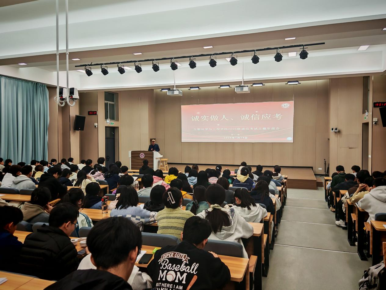 为切实强化学生诚信意识,严肃考风考纪,营造公平、公正的考试环境,1月19日晚,我院于铜盘校区科报厅B召开2025级本科生诚信考试教育年段会。学院党委副书记曹仁秋出席会议,全体2025级本科新生参加会议。会议由2025级新生辅导员杜美佳老师主持。
